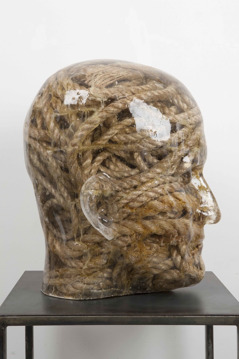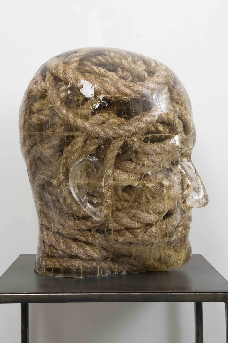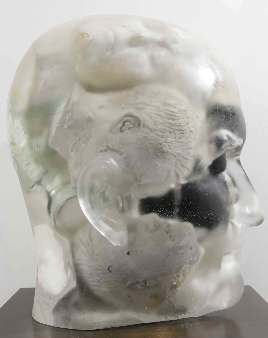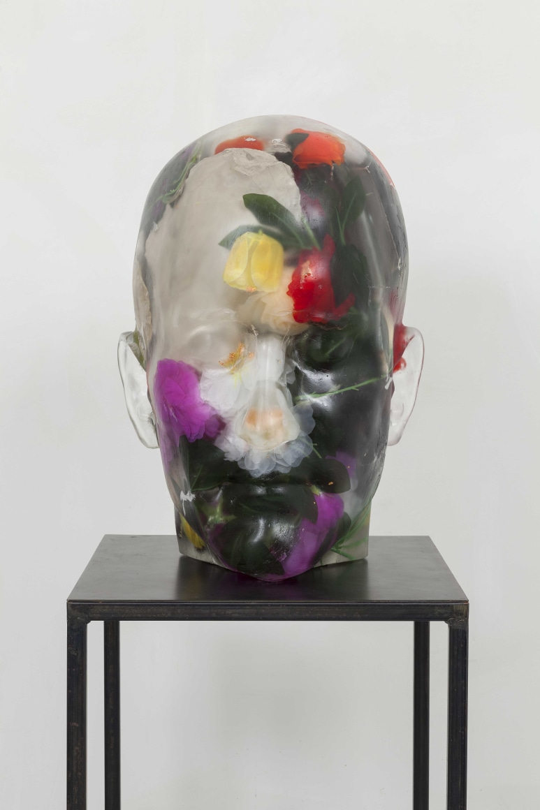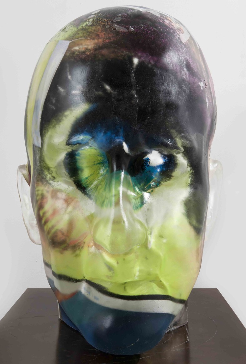 solid cast UV stable polyurethane resin with studio and personal detritus, found and salvaged objects, books.