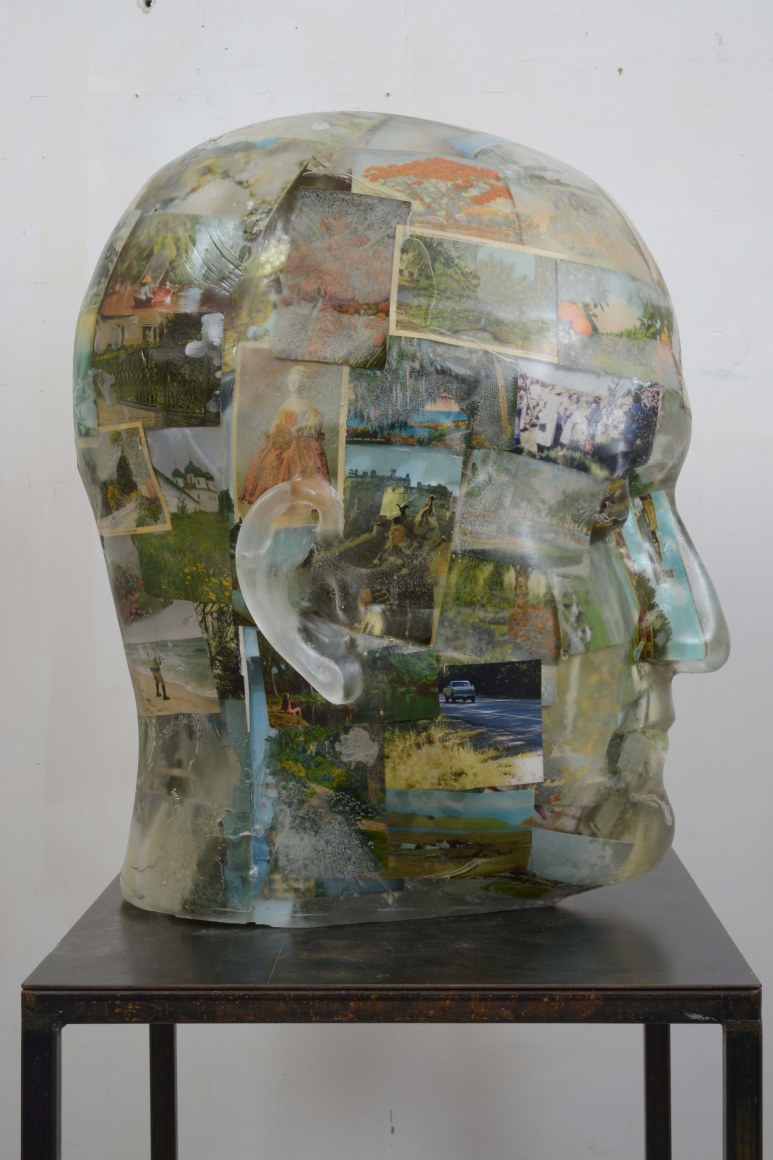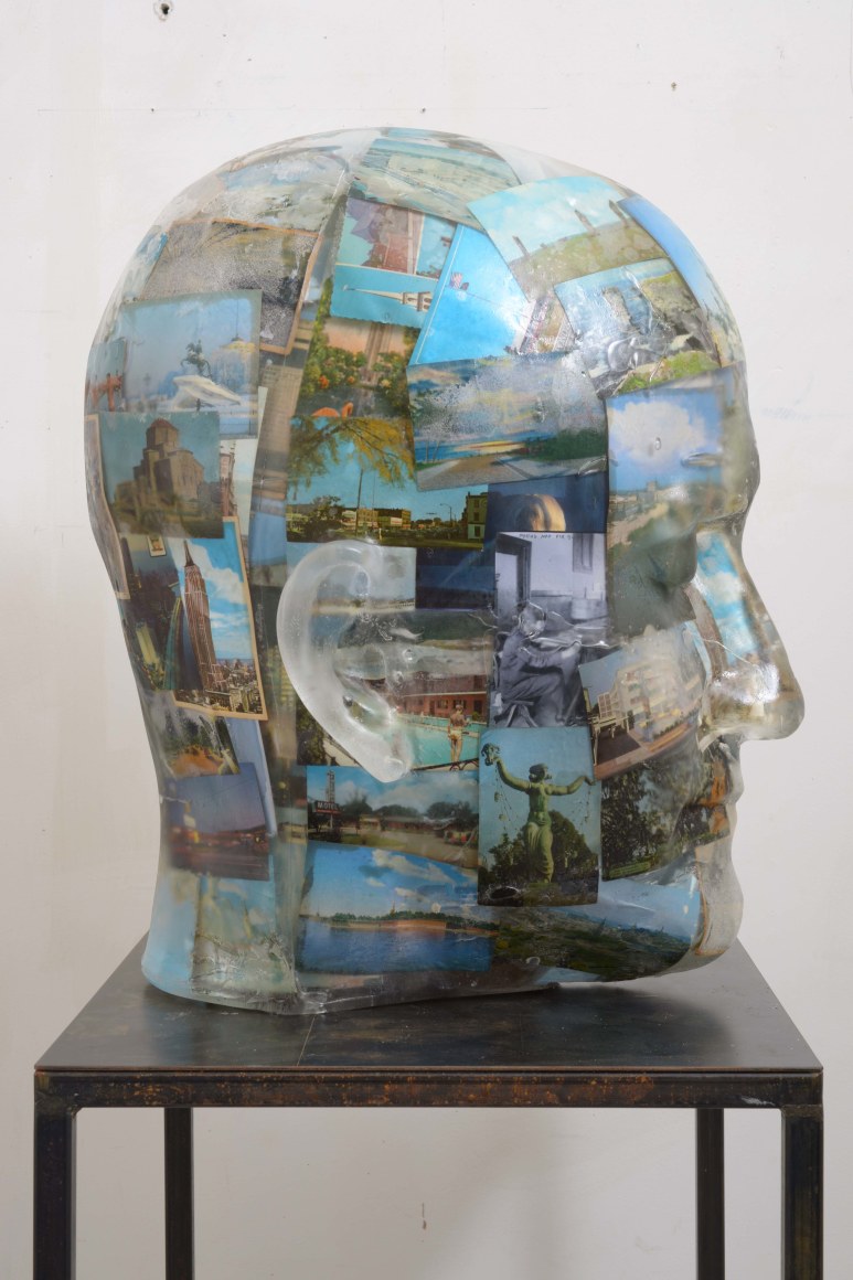 solid cast UV stable polyurethane resinfound and personal photographs and postcards
